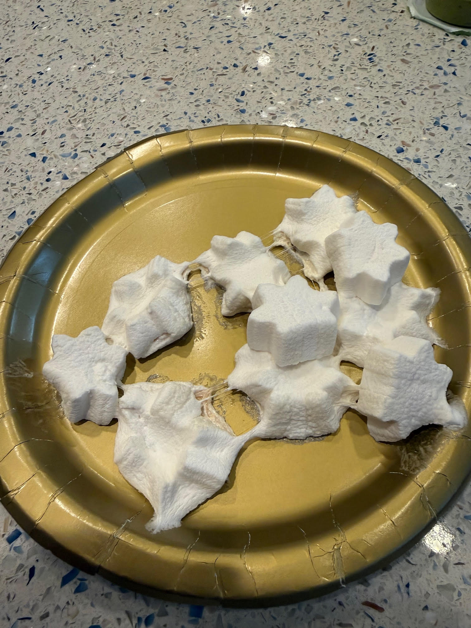 - We arranged the marshmallows on a plate (we even stacked them into a little tower!).